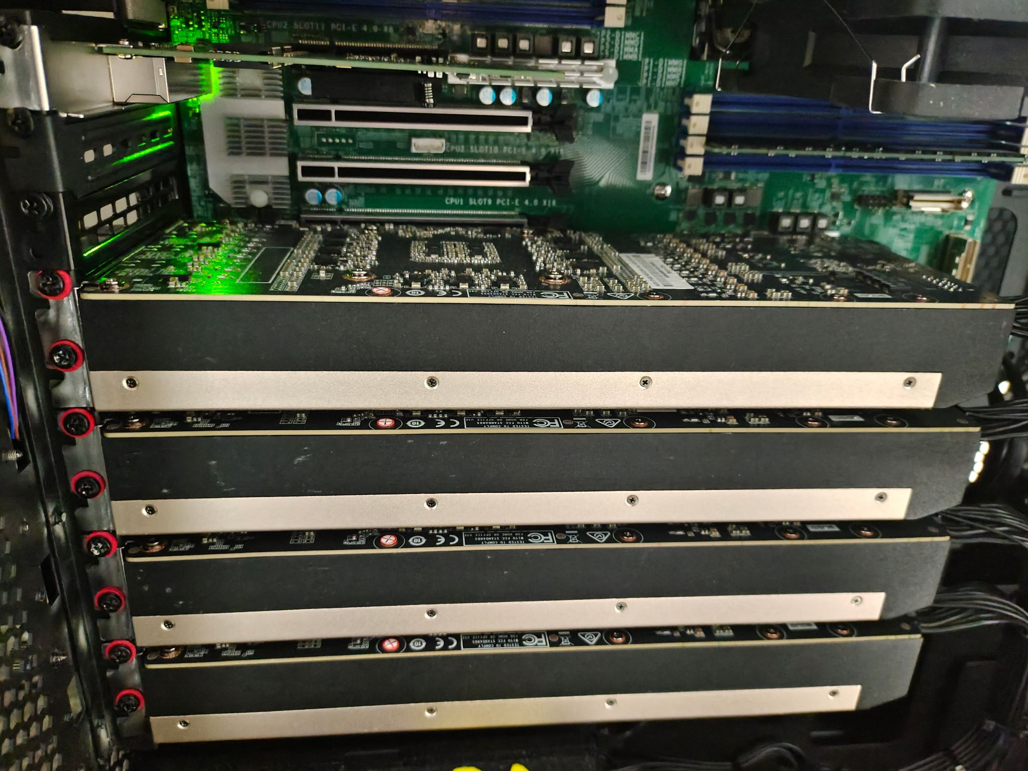 工作站配置: CPU:Intel Xeon Platinum 8352V 主板:SuperMicro X12DPG-QT6 GPU:四路  GeForce RTX 4090 内存:RECC DDR4 3200 64G*4 SSD:Samsung 980 Pro 2TB HDD:WD 西数 10TB SATA 机箱:KF-M04A全塔工作站机箱 电源:长城巨龙 GW-EPS2000BL